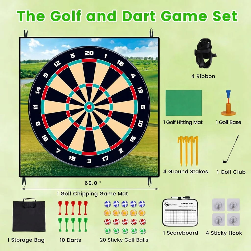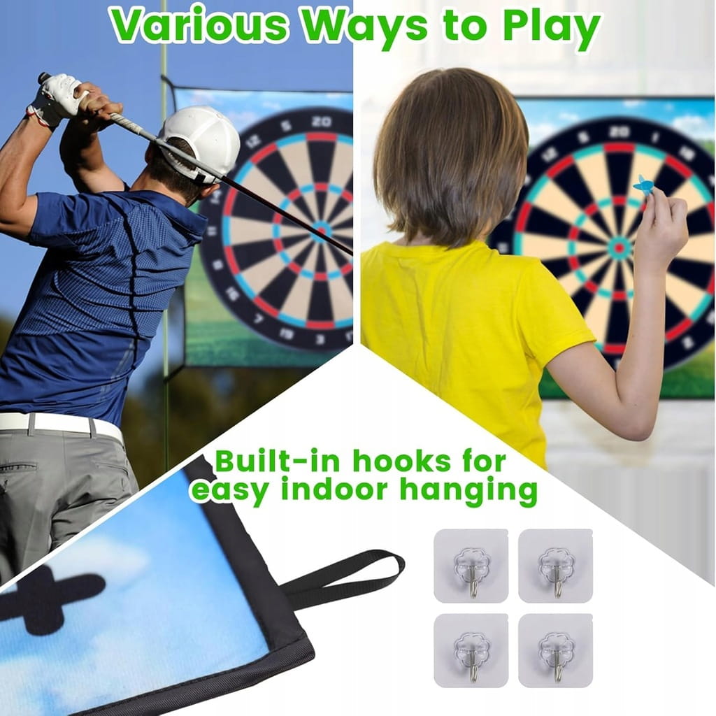 Zestaw FOOING 2w1 łączy grę w golfa z rzutkami, oferując wyjątkową rozrywkę dla dzieci i całej rodziny. Mata umożliwia ćwiczenie krótkiej gry (chipowanie), a jednocześnie pozwala na rzucanie lepkimi piłkami i rzutkami, dzięki czemu dwie osoby mogą bawić się jednocześnie. To idealne rozwiązanie do domu, ogrodu i na imprezy.