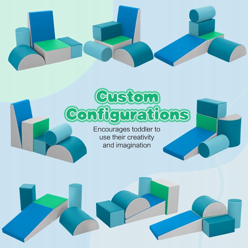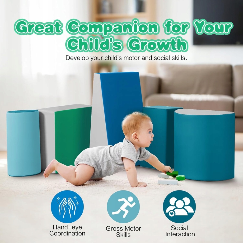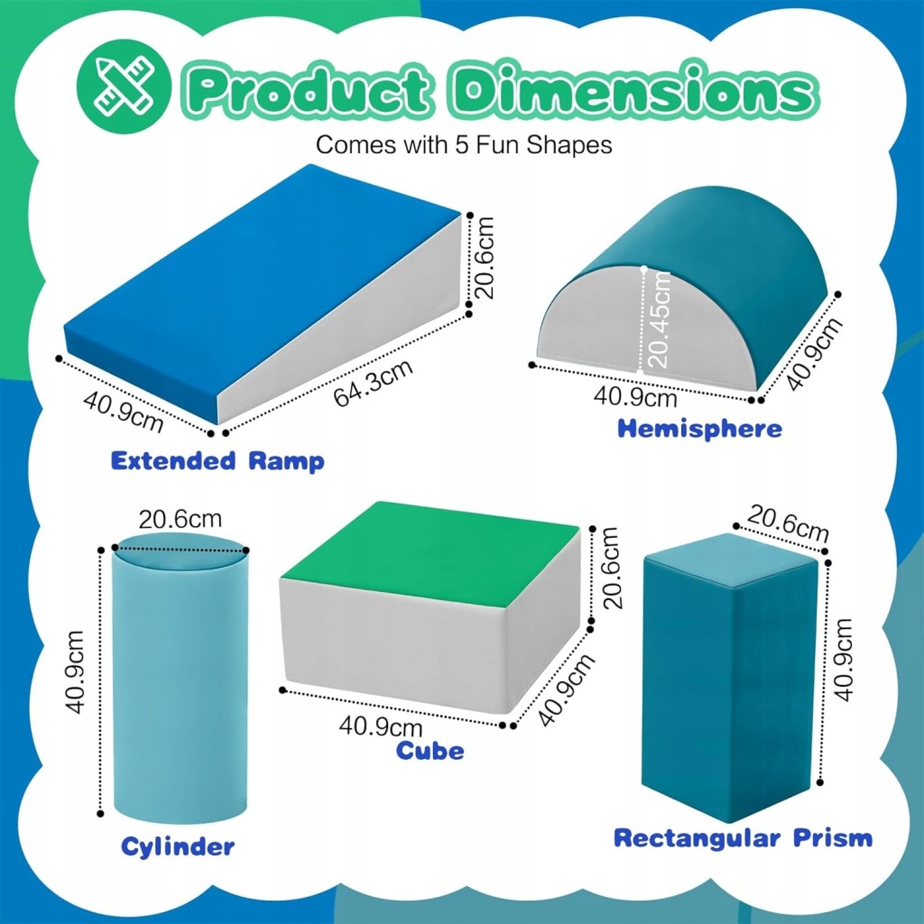 Wilwolfer Foam Building Blocks to zestaw 5 miękkich piankowych klocków wspinaczkowych, które zapewniają dzieciom aktywną i bezpieczną zabawę w domu, przedszkolu lub sali zabaw. Zestaw został stworzony z myślą o najmłodszych dzieciach, wspierając rozwój ruchowy poprzez wspinanie się, ślizganie, układanie i kreatywną zabawę.
