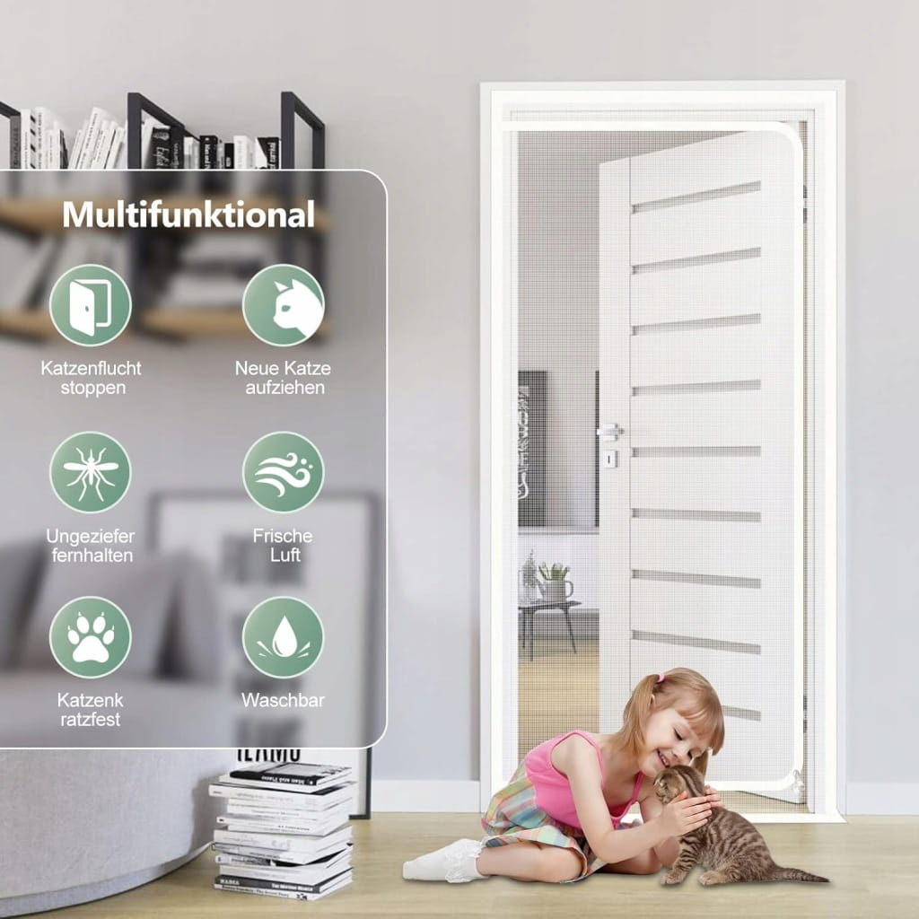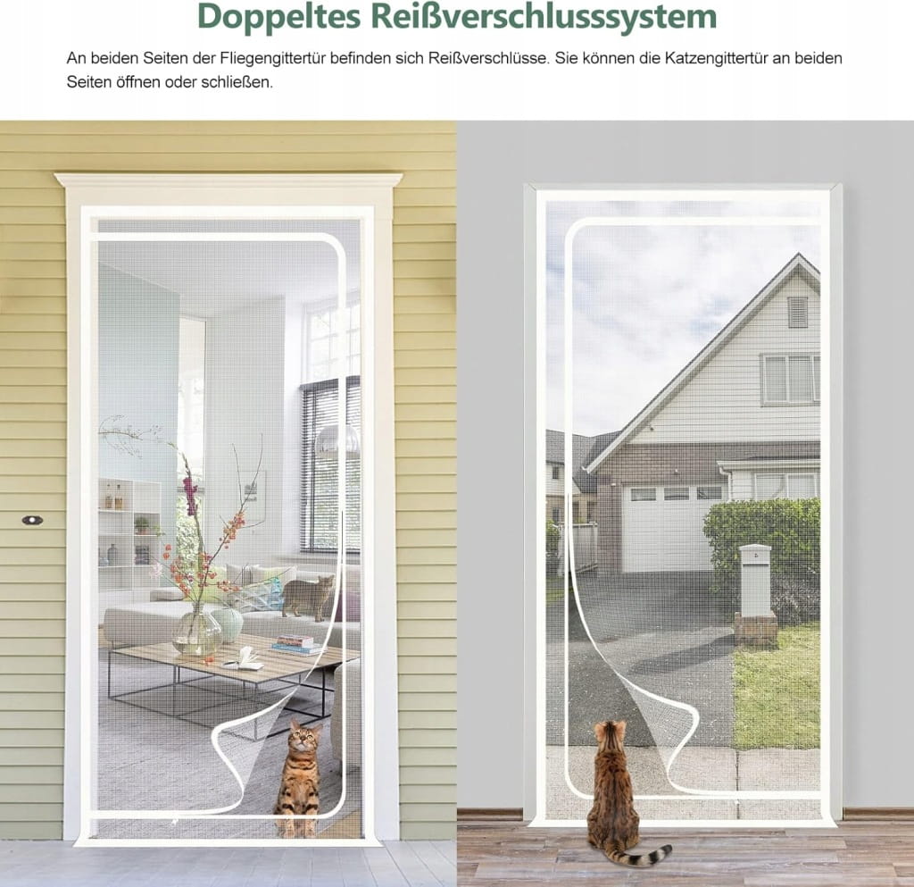 Wzmocniona moskitiera do drzwi 90 × 210 cm to praktyczne rozwiązanie dla domów ze zwierzętami. Skutecznie zapobiega ucieczce kotów i psów na zewnątrz, jednocześnie umożliwiając wietrzenie pomieszczeń. Może również pomóc w oddzieleniu zwierząt w domu, na przykład podczas adaptacji nowego pupila.